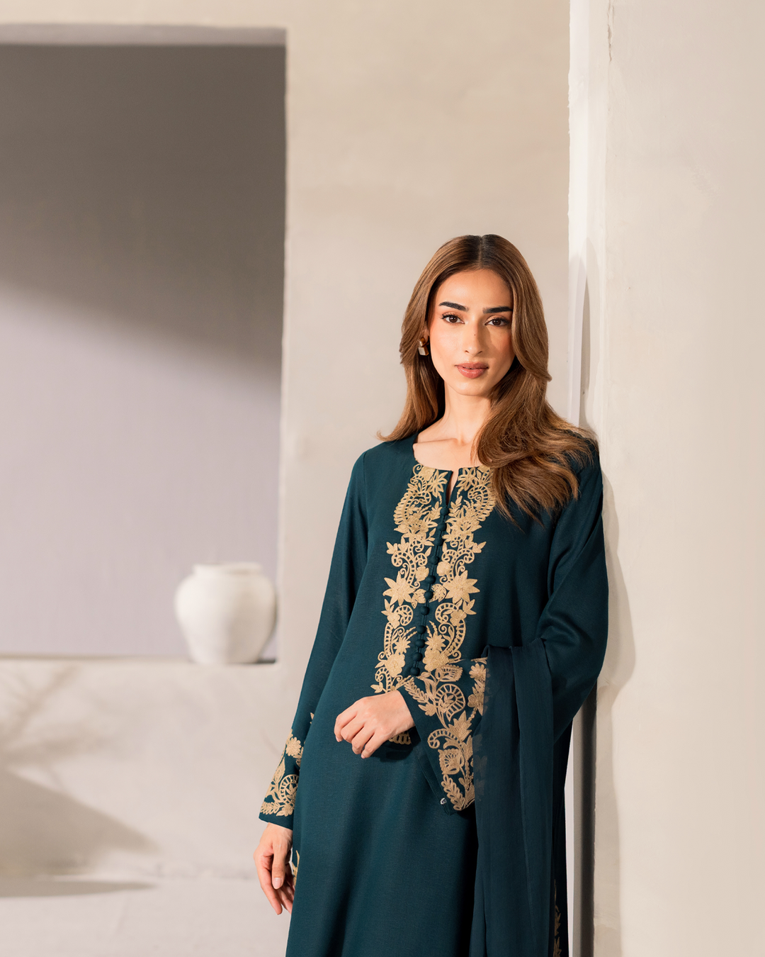 Luxurious Green pocket Embroidered 2-Piece Set Indulge in luxury with our beautifully embroidered two-piece set...